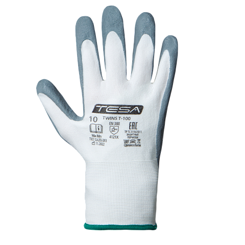 Перчатки TESA TWINS T-100, вспененный нитрил, покрытие ладонной части, манжета, белый/серый